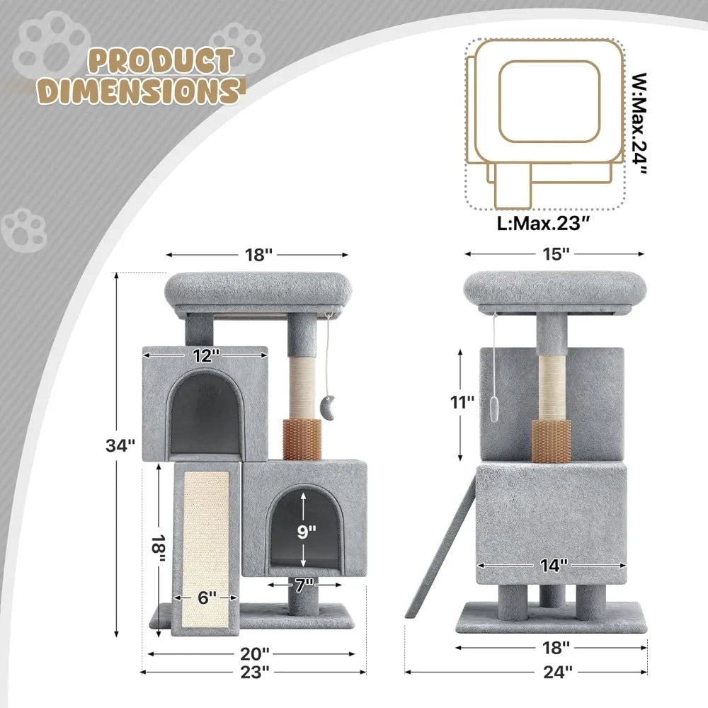 34" Multi-Level Cat Tree Tower with XL Perch, Scratching Posts & Sisal Ramp